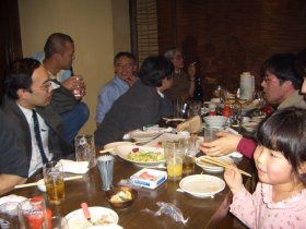 | 札幌及びその周辺在住のOB、OG12人(プラス子供4人?)が参加。池谷さんとエロマンにそれぞれ第1子が誕生したので、 そのお祝いも兼ねて開かれました。H6卒マスオさん(大内さん)とH8卒Bit夫妻(若林さん)の歓迎会との名目もありましたが、 残念ながら御三方は今回欠席です。また次の機会に。幹事のからすさんお疲れさまでした。 2次会は近くのスナックで。カラオケフィーバーで夜は更けていきました。 |